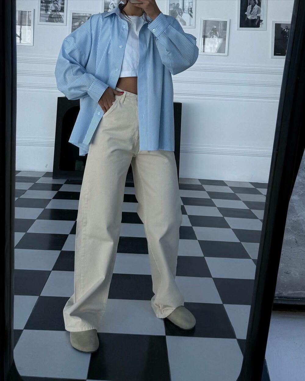 Рубашка оверсайз хлопковая в полоску цвет голубой