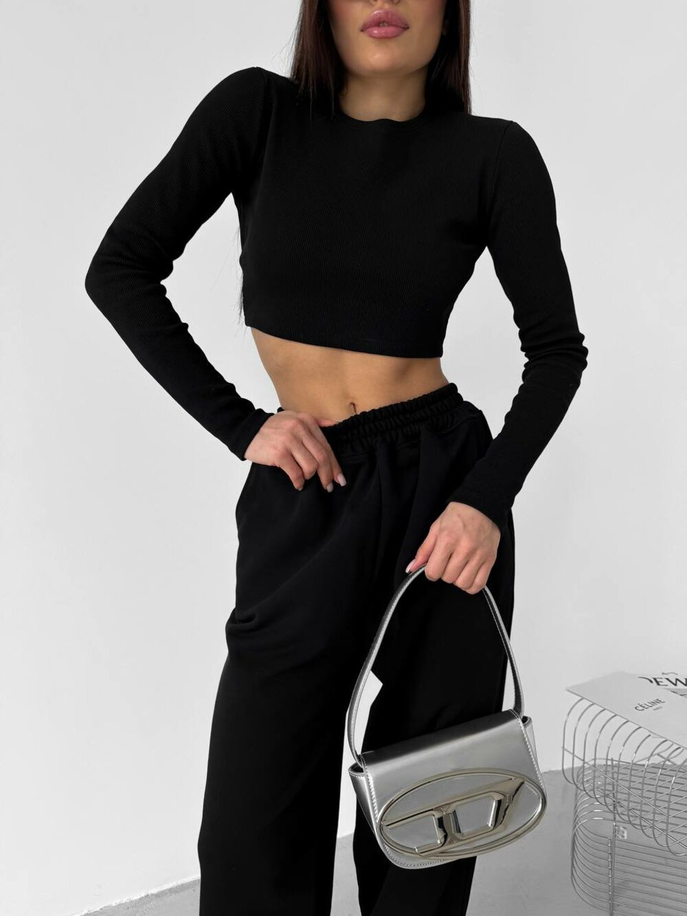 Джогеры выполнены из мягкой ткани с эластичным поясом и свободным кроем, обеспечивая комфорт и свободу движений. Широкие штанины и зауженные к низу манжеты подчёркивают спортивно-уличный стиль. Идеальны для расслабленного, но трендового повседневного образа. Цвет черный.
