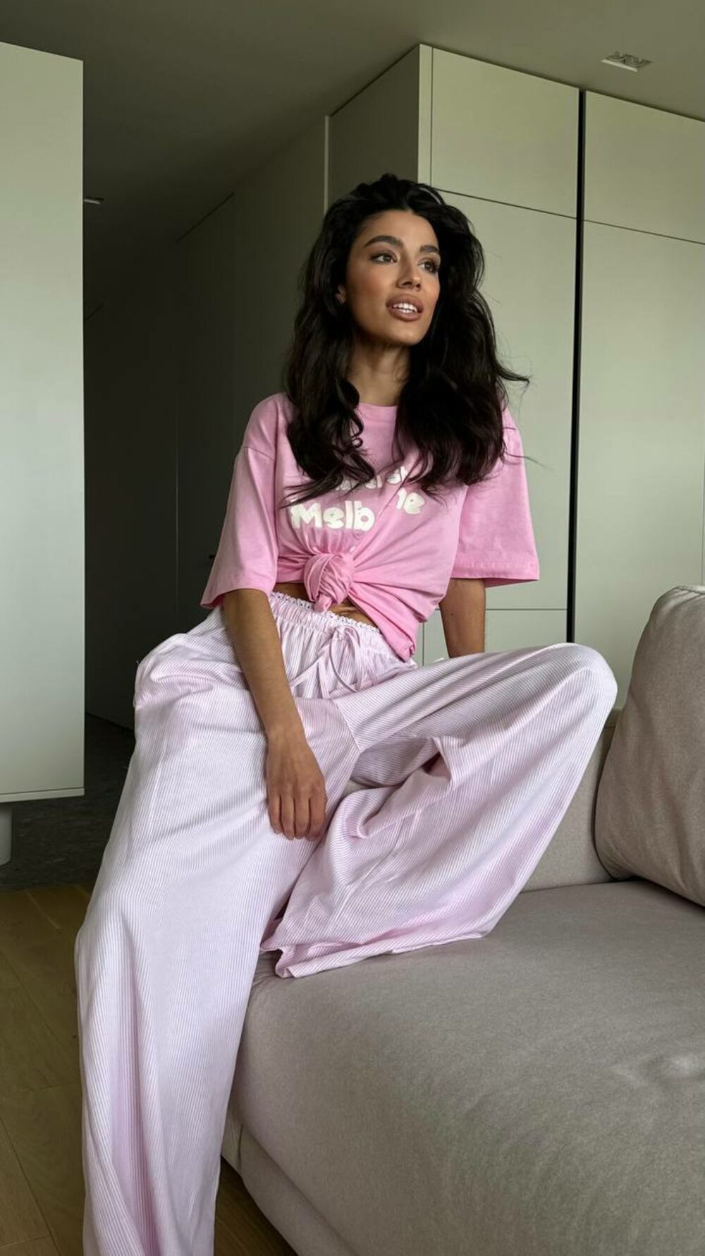 Штаны изготовлены из премиальной натуральной ткани; очень лёгкие, с кружевом. Посадку можно регулировать. Цвет розовый.Размеры: 40-42 | 44-46Талия: 60–67 см | 65–75 смБёдра: 88–94 см | 95–99 смДлина изделия: 109 см