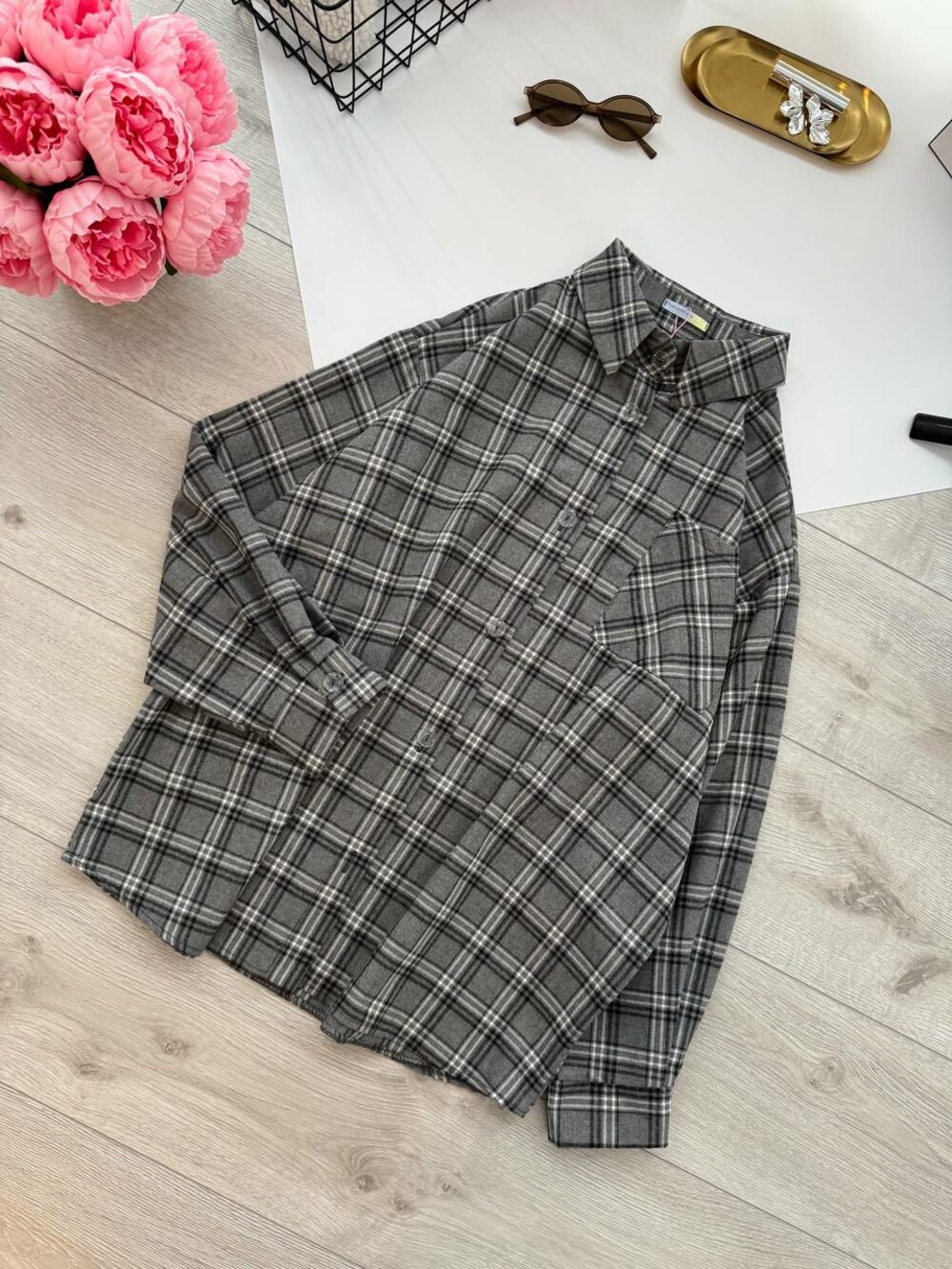 Базовая рубашка оверсайз в клетку, цвет серый.