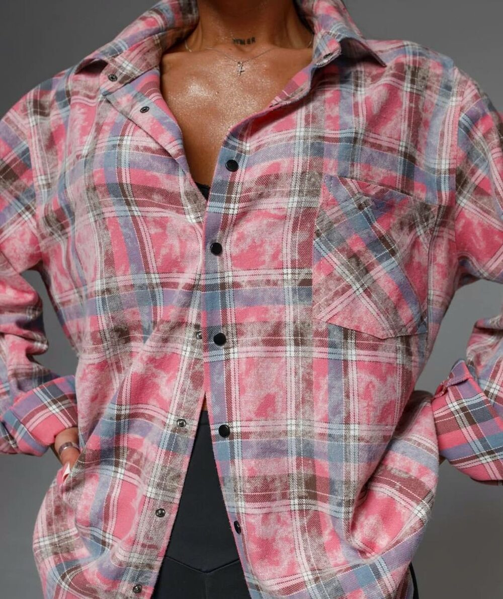 Рубашка в клетку оверсайз, выполнена из натуральной ткани высочайшего качества; очень приятная к телу.Качество Премиум. Цвает розовый.Длина — 82 см.