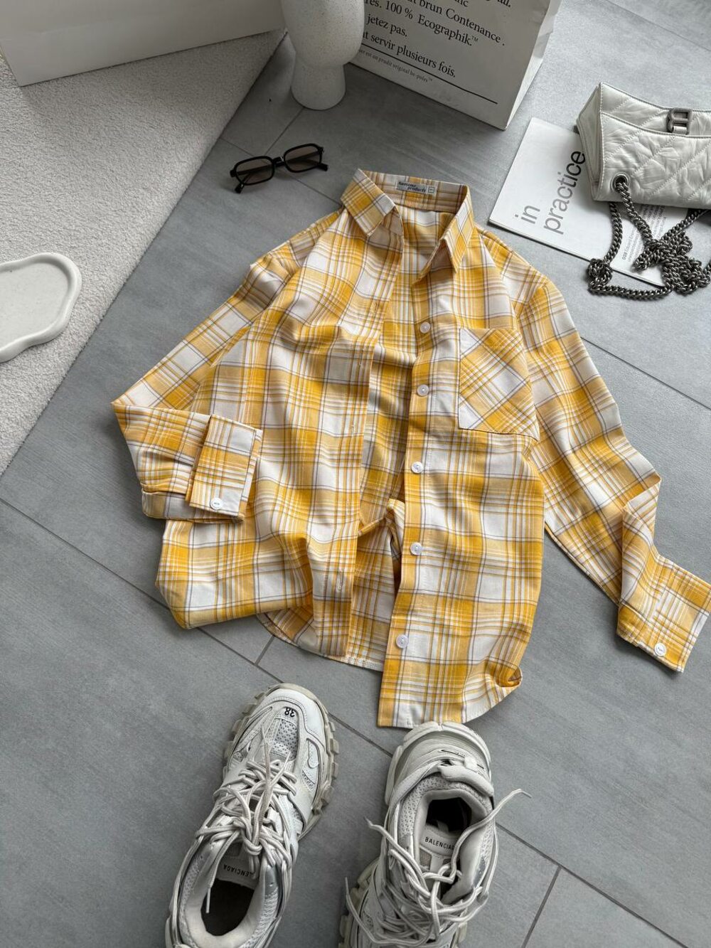 Стильная и яркая рубашка из лёгкой ткани. Незаменимая база твоего гардероба этой осенью и летом. Цвет желтый с бежевым.