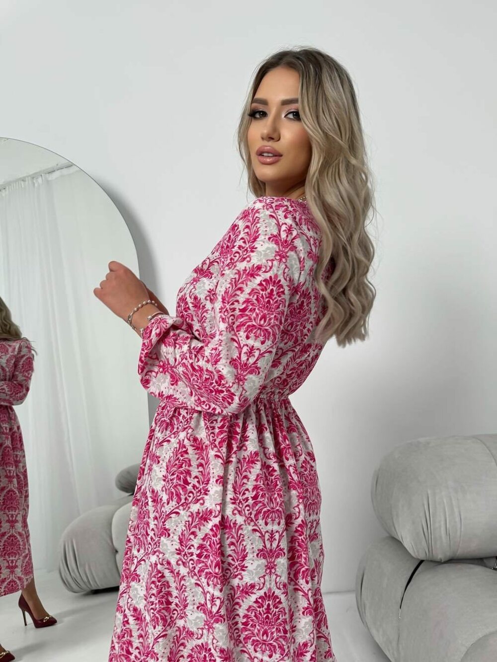 Принтованое платье свободного кроя, талия на резинке, цвет малина