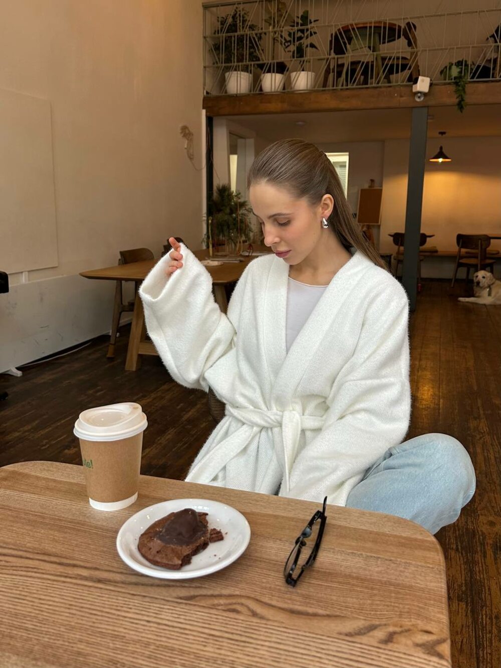 Анговорый кардиган с пояском, теплый и приятный к телу. Цвет молочный.