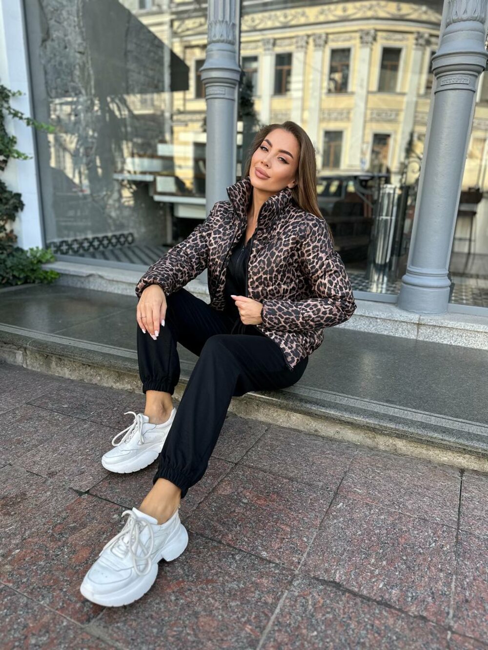 Короткая зимняя куртка на змейке, принт леопардовый, наполнитель силикон 200, змейка