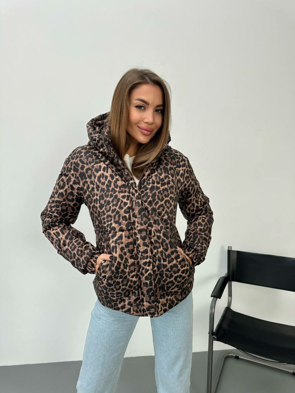 Куртка с капюшоном принт леопард утеплитель силикон 200 цвет коричневый
