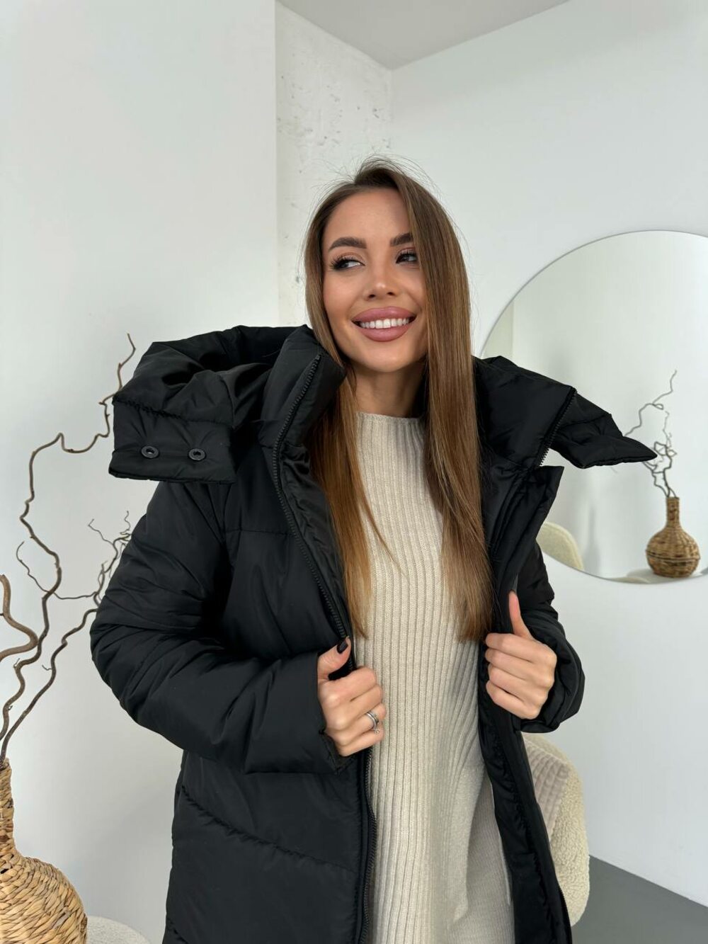 Пальто утепленное зимнее с капюшоном в минусовую температуру цвет черный