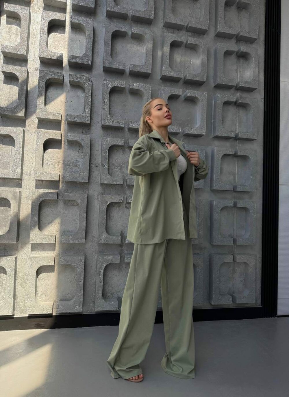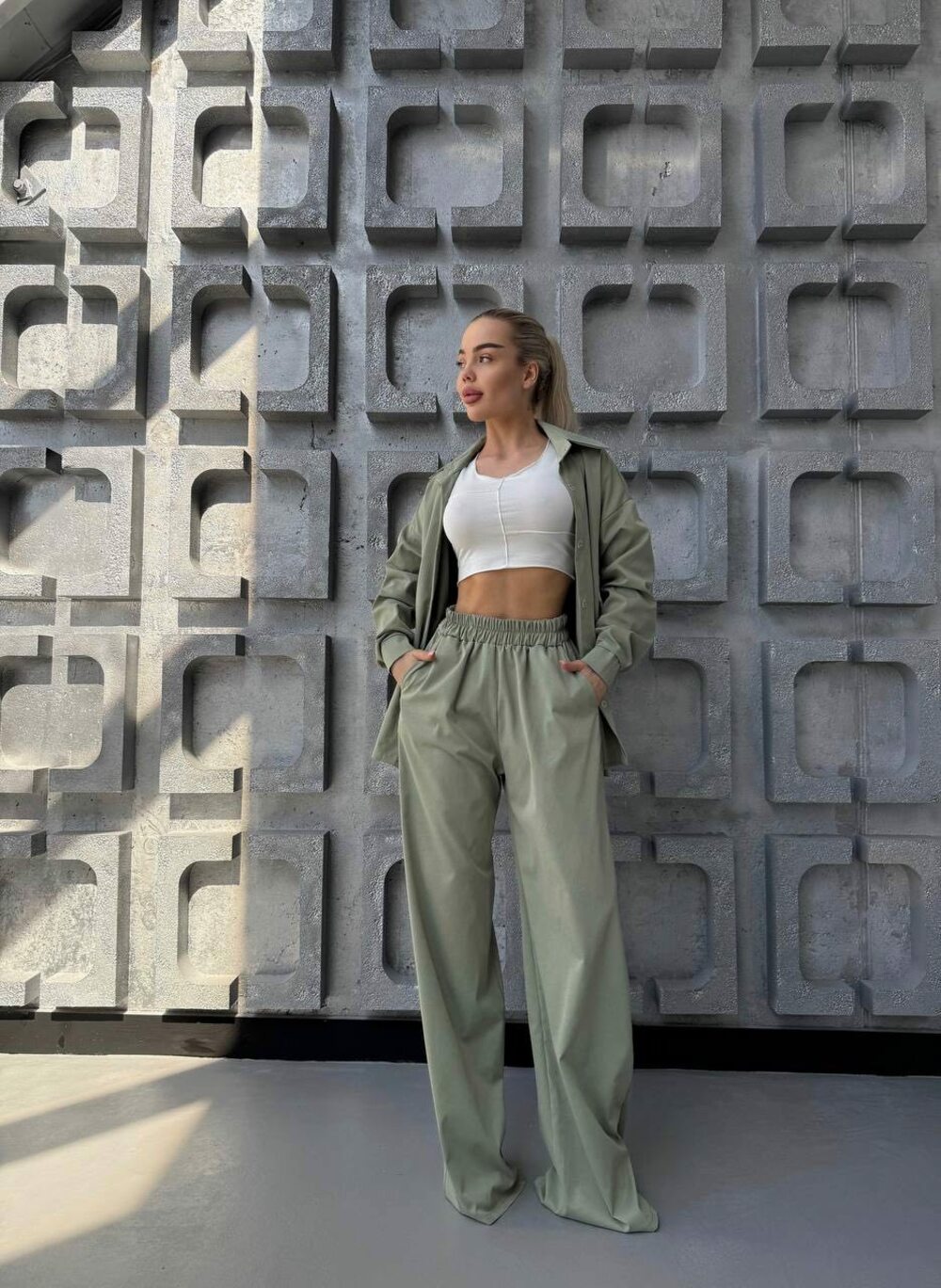 Костюм двійка з сорочкою та брюками вільного крою, оливковий колір.