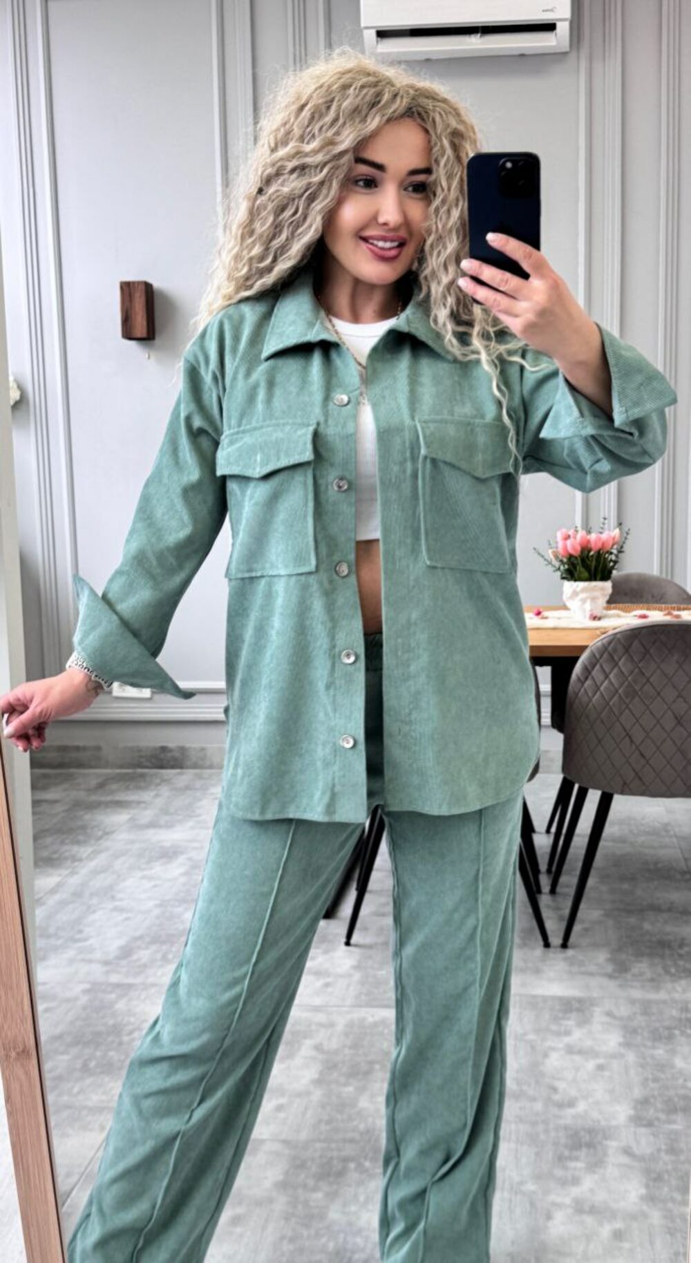 Костюм двійка складається з штанів та сорочки, колір зелений