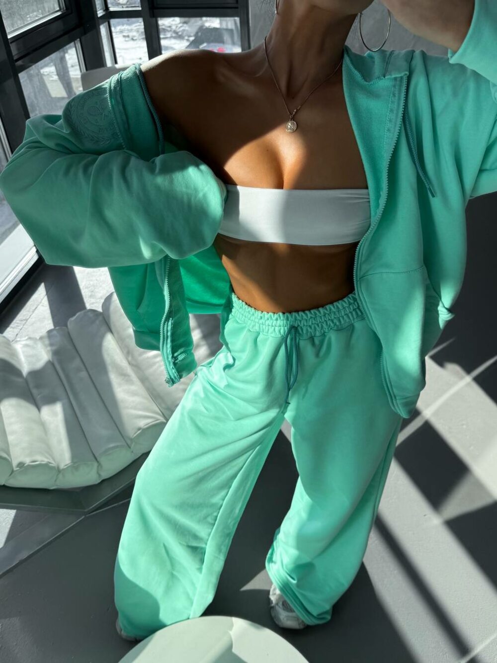 Спортивний костюм з кофти та штанів. Це саме той костюм, в якому ти виглядатимеш неймовірно круто. Створений із любов'ю до кожного. Вишивка на спині та спереду. Колір ментол.