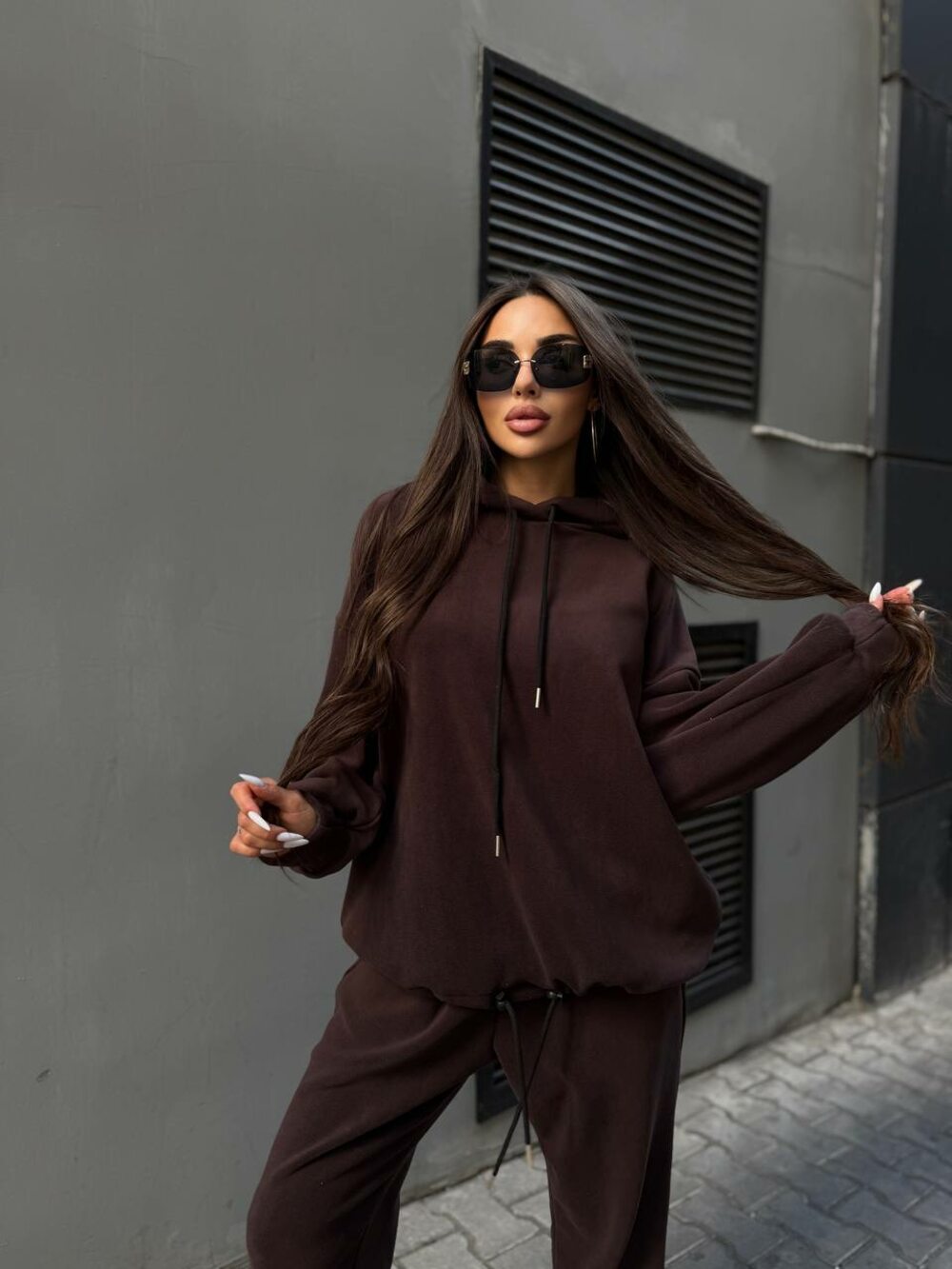 Костюм складається з худі та джогерів, колір шоколад